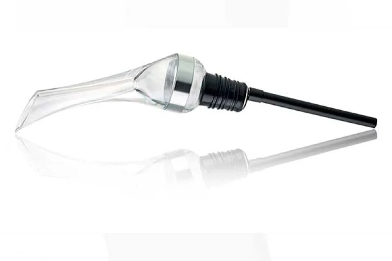 Fabriqué à partir d'un alliage d'aluminium, de silicone et de plastique ABS, il a la forme d'un bec verseur, ce qui lui permet de ralentir l'arrivée du vin dans le verre, en l'oxygénant et en enrichissant le goût du vin sans que cela ne coule.