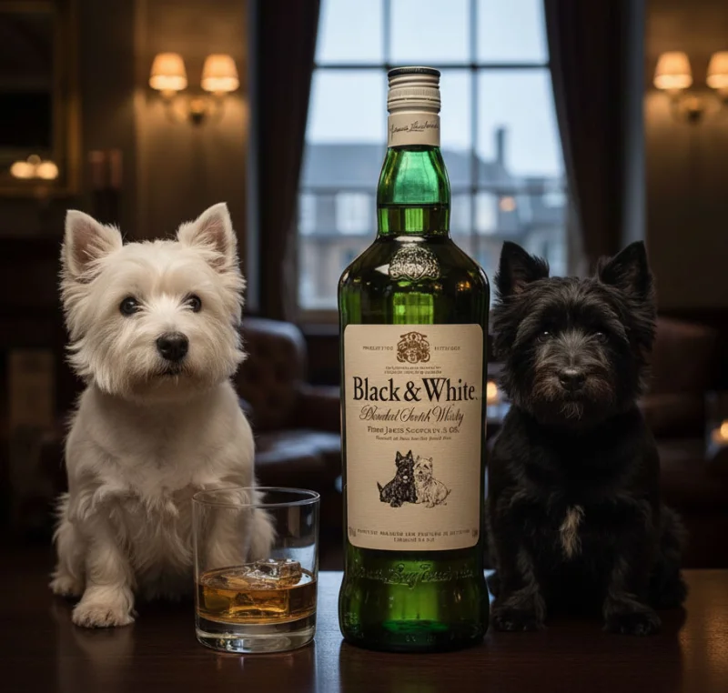 The brand's motif (featuring a black Scottish Terrier and a white West Highland White Terrier) was conceived by James Buchanan himself during the 1890s.