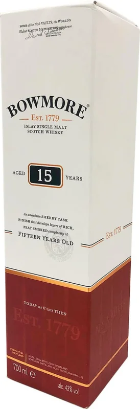 La Destilería Bowmore es una de las mas antiguas de Escocia, ha permanecido en las orillas del Lago Indaal en la Isla Hebridean de Islay desde 1779. Esta muy próxima al mar lo que es vital para perfilar el caracter final de Bowmore Islay Single Malt, como un adherido extricto a los medios de producción continuados por los Destiladores Morrison Bowmore en 1963 al igual que sus cuatro anteriores dueños.