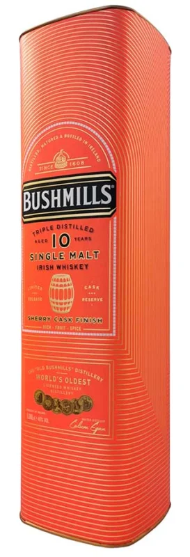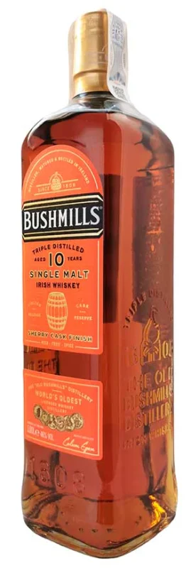| Marca | BUSHMILLS | | Capacidad | 1 Litro | | Formato | Cristal | | Destilaciones | 3 | | Tipo | Single Malt | | Barricas | Barricas ex Oloroso | | Graduación Alcohólica | 46% | | Reserva | 10 Años |