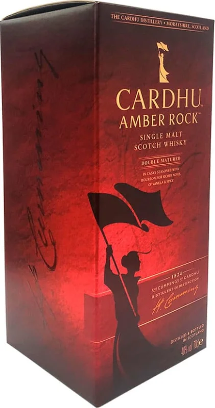 | Brand | CARDHU AMBER ROCK | | Size | 70 CL | | Format | Glass | | Region Produced in | Morayshire | | Type | Single Malt | | Cask | American ex-Bourbon casks | | Alcohol Content | 40% | Tasting Notes | Color: Golden amber Nose: honey, caramel, cinnamon and malted cereals followed by hints of brittle. Palate: Vibrant, sweet and spicy with notes of orange, lemon, cane sugar and honey. |
