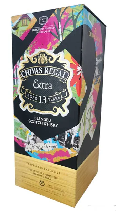 Chivas Extra 13 Rum Cask con acabado selectivo en barricas de ron está inspirado en el histórico emporio de los hermanos Chivas en el n.º 13 de King Street en Aberdeen, dedicado a la importación de licores, especias exóticas y productos gastronómicos de lujo de todo el mundo.