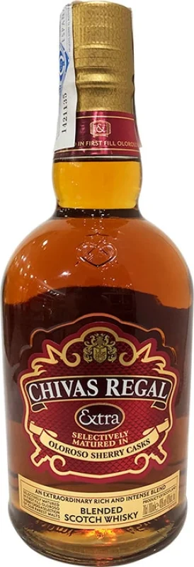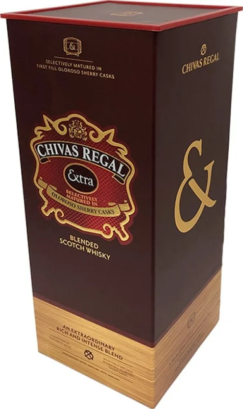 | Marca | CHIVAS REGAL EXTRA | | Capacidad | 70 CL | | Formato | Glass | | Tipo | Blended | | Barricas | Spanish ex-Oloroso casks | | Graduación Alcohólica | 40% | Notas de Cata | Colour: dark in shade a warm amber glow Nose: Fruity sweet with notes ripe pears and melon, creamy toffee, milk chocolate, cinnamon and a hont of ginger. Taste: sweet ripe pears in syrup, vanilla caramel, cinnamon sweet and almonds in the background. Finish. Incredibly rich, smooth with a long and fulfillin finish. | | Premios | 2016 GOLD MEDAL - INTERNATIONAL WINE AND SPIRITS COMPETITION 2015 GOLD MEDAL - SAN FRANCISCO WORLD SPIRITS COMPETITION 2015 GOLD MEDAL IN THE SCOTCH WHISKY MASTERS |