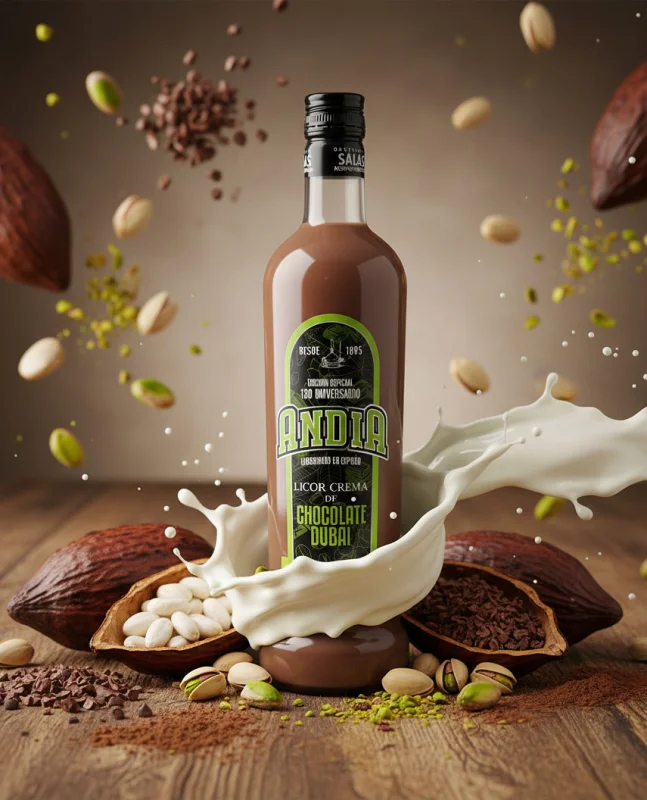 La Crema de Chocolate Dubai es una experiencia única que combina la suavidad del cacao con el sabor delicado del pistacho. Elaborada por Destilerías Salas en Monforte del Cid (Alicante), esta exquisita crema representa el equilibrio perfecto entre la tradición licorera mediterránea y un toque de inspiración oriental que la hace realmente especial. Su textura aterciopelada, su aroma dulce y su sabor persistente hacen de esta crema una opción ideal para quienes buscan disfrutar de un licor con carácter, elegancia y un punto de originalidad.