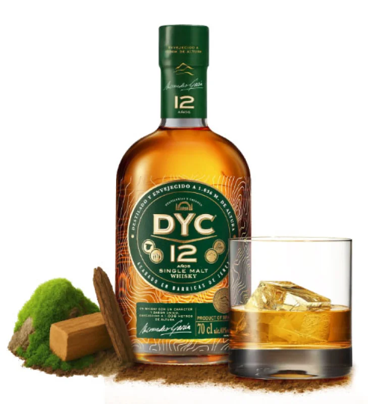 Il DYC 12 Anni è prodotto con materie prime locali accuratamente selezionate. L’acqua di sorgente, i cereali di prossimità e un approccio rispettoso dell’ambiente segnano l’inizio del processo. Dopo la fermentazione e la distillazione in alambicchi di rame, il whisky riposa per dodici anni in botti di rovere che hanno precedentemente contenuto vini di Pedro Ximénez e Oloroso, donandogli ricchezza aromatica ed equilibrio inconfondibile.