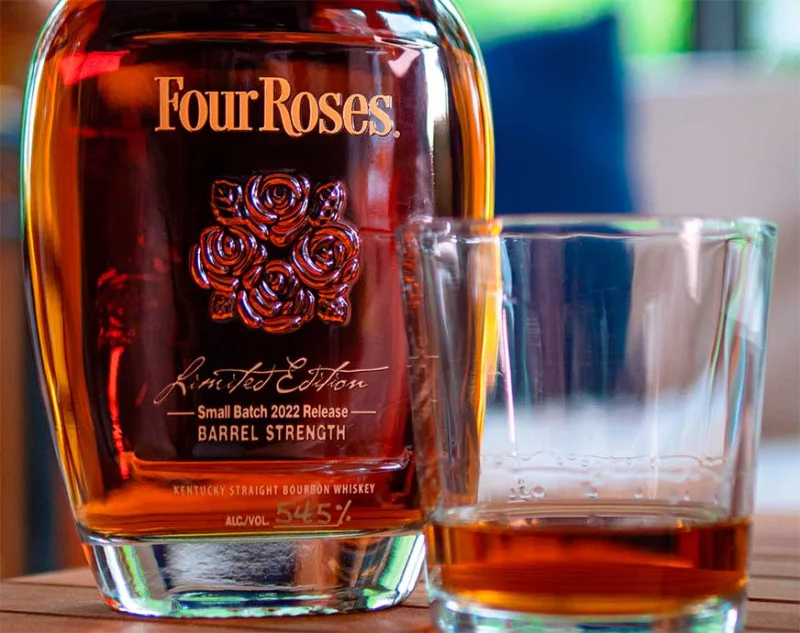 Four Roses Limited Edition Small Batch 2022 se compone de una mezcla de las 4 principales recetas elaboradas por la destilería y levaduras seleccionadas.