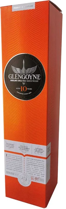 | Marca | GLENGOYNE | | Capacidad | 70 CL | | Formato | Cristal | | Zona de Producción | Higland | | Tipo | Single Malt | | Barricas | Roble Blanco ex Jerez | | Graduación Alcohólica | 40% | | Reserva | 10 años | Notas de Cata | Color: Tonos dorados medios, limpio y brillante Nariz: Aroma rico en malta con notas de roble, manzana y jerez. Boca: Suave y delicado, roble y manzana con final frutal. |