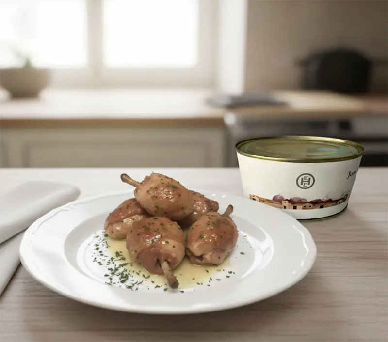 Su presentación elegante y su sabor refinado los convierten en una elección perfecta tanto para un aperitivo como para una tapa gourmet. También se pueden integrar en recetas más elaboradas, acompañados de verduras asadas, puré de patata o arroz meloso. Pueden servirse fríos, a temperatura ambiente o calentados al baño maría o en microondas (2–3 minutos en un recipiente adecuado). Esta versatilidad los hace ideales para cualquier tipo de mesa, desde una comida familiar hasta una cena especial con invitados.