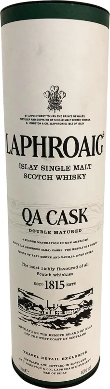 Laphroaig Quercus Alba Cask (Roble Blanco Americano en Latín), QA, nace de la vigilancia y la artesanía, la clave para esta increíble fusión de sabores. El primer paso de maduración tiene lugar en barriles que han contenido bourbon, después es transferido a barricas carbonizadas de roble blanco americano. El segundo paso de maduración crea una mezcla de turba ahumada equilibrado con notas calidas de vainilla. El tiempo necesario en esta poderosa etapa varía, lo que significa que cada barrica es cuidadosamente seleccionada a mano para asegurar el exacto equilibrio de aromas.