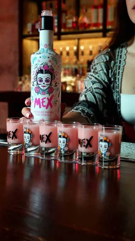 MEX, la crema con tequila más osada.  Un sabor inconfundible en una botella inolvidable. Fusión perfecta del sabor canalla del tequila y la suavidad de la crema con fresas. Elaborado con auténtico tequila mexicano (17º)