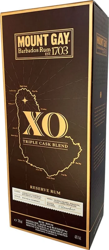 Mount Gay X.O es una mezcla de mucho nivel de los rones mas finos de la destilería, cuidadosamente seleccionadas de sus mayores reservas. El resultado de cientos de años de respeto por las tradiciones en la producción de ron. Una vez saboreado, el consumidor experimentará un cuerpo agradáblemente cálido y una extremada suavidad. Con una fuente tan fina sólo puede conseguirse un resultado tan perfecto.