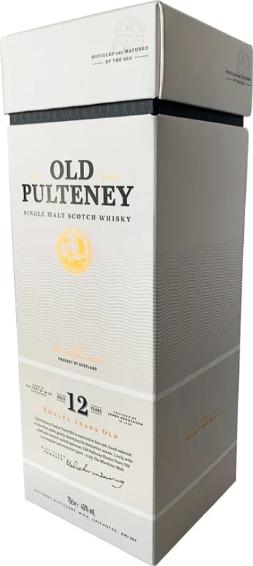 Envejecido en barricas de roble que han contenido bourbon americano y secadas a la intemperie, el "desvergonzantemente excelente" Old Pulteney Reserva 12 años es el buque insignia de la familia Old Pulteney. Tradicionalmente elaborado a mano usando técnicas que otras destilerías han abandonado hace mucho tiempo, este ganador de numerosas medallas de oro en los concursos mas prestigiosos del mundo es una marca de agua de alcoholes de calidad.