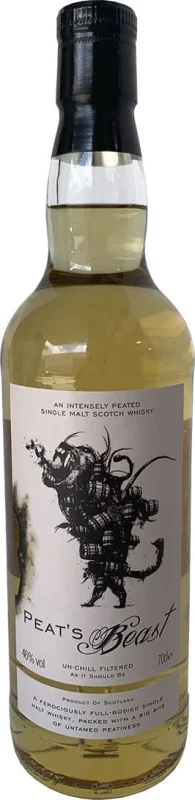 | Brand | PEAT'S BEAST | | Size | 70 CL | | Format | Glass | | Type | Single Malt | | Cask | American ex-Bourbon casks | | Alcohol Content | 46% | Tasting Notes | Taste: Strong and bold with plenty of backbone and structure as this great monster unfolds its fiery fangs on your palate. This is not for the faint-hearted. Take a generous mouthful with a biting wind blowing furiously in your face. Hold it long in your mouth allow the thick tar, peat smoke and creamy liquorice to penetrate every part of your tongue. Time will tame it.