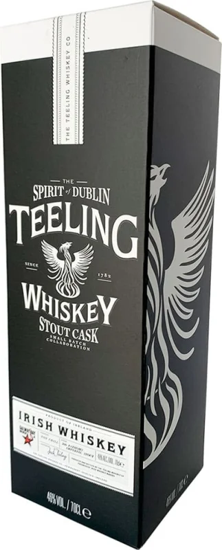 | Brand | TEELING STOUT CASK | | Size | 70 CL | | Format | Glass | | Region Produced in | Dublin | | Type | Blended | | Cask | Ex-Stout Beer | | Alcohol Content | 46% | Tasting Notes | Nose Dark chocolate, truffles, sour apples, ocean spray>br> Taste Sweet malt, roasted barley, sour fruits, black cherries Finish Seville oranges, digestive biscuits, honeycomb and cream |
