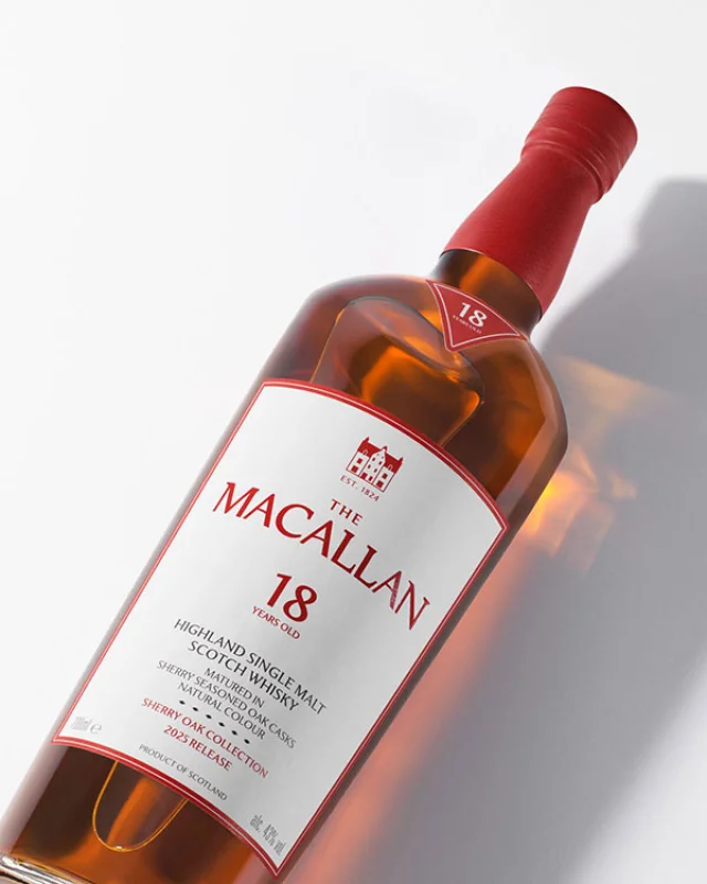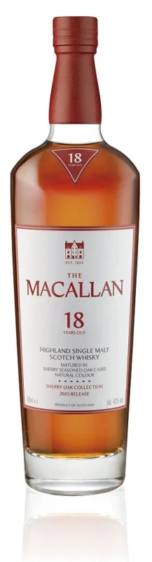 La nueva The Macallan Sherry Oak Collection 2025 Release llega con un cambio de imagen que refuerza el vínculo entre la artesanía del whisky y el arte contemporáneo. La colección, formada por whiskies single malt de 12, 18, 25 y 30 años, se presenta con una estética actualizada que combina la elegancia clásica de la destilería con el inconfundible estilo creativo de David Carson. La botella y la caja se visten con un diseño que juega con tonos rojizos, tipografías libres y composiciones inesperadas, evocando los matices del jerez y la madera que marcan la esencia de esta serie.