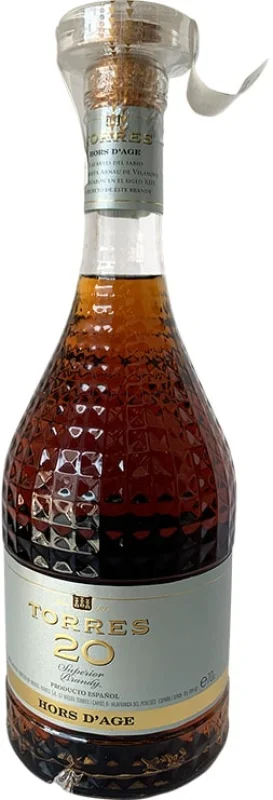 | Marca | TORRES 20 | | Capacidad | 70 CL | | Formato | Glass | | Zona de Producción | Vilafranca del Penedès | | Barricas | American white oak casks | | Elaborado con | Perellada - Ugni Blanc | | Graduación Alcohólica | 40% | | Reserva | Solera 20 Years | Notas de Cata | An aged brandy with a dark noble amber color. The aroma is deep and warm with traces of dried fruit and nuts. It displays elegant notes of spices (vanilla, cinnamon, nutmeg). Lush and unctuous on the palate. |