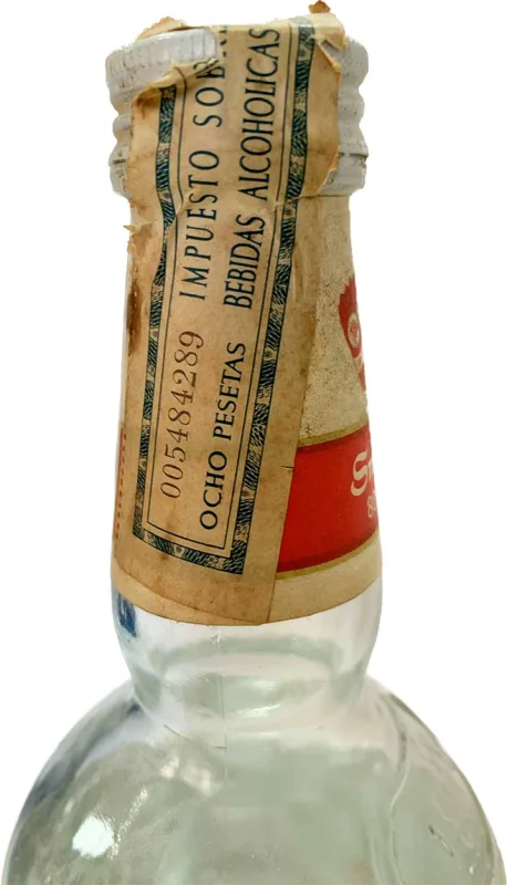 Botella Antigua de Vodka Smirnoff con sello de 8 pesetas (Franco). Años 70.