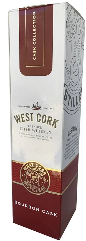 | Marca | WEST CORK | | Capacidad | 70 CL | | Formato | Glass | | Zona de Producción | Skibbereen - Cork | | Destilaciones | 3 | | Tipo | Blended | | Barricas | American ex-Bourbon casks | | Graduación Alcohólica | 40% | Notas de Cata | TASTE: Malt, slight citrus, cracked pepper.