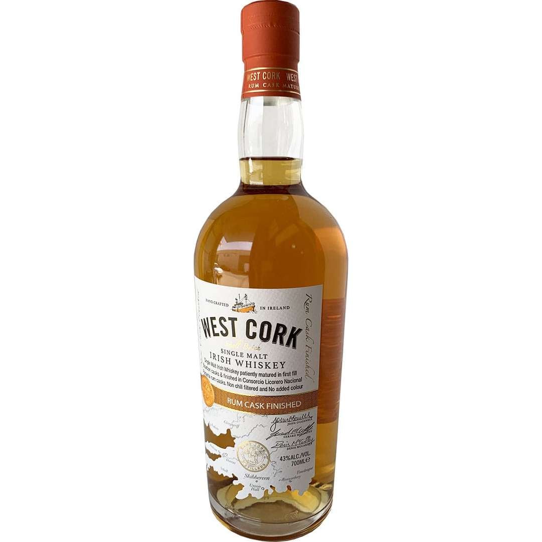 | Marca | WEST CORK | | Capacidad | 70 CL | | Formato | Cristal | | Zona de Producción | Skibbereen - Cork | | Destilaciones | 3 | | Tipo | Single Malt | | Barricas | Roble ex Ron, Roble Blanco Americano ex Bourbon | | Graduación Alcohólica | 43% | Notas de Cata | Sabor: Sabores tostados como el café, el pan tostado y el chocolate, con un final seco. Aroma: Notas de miel, vainilla, caramelo y chocolate en la nariz. Ligera fruta, pero más bien una combinación de fresca y seca. |