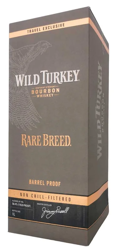 | Marke | WILD TURKEY RARE BREED | | Inhalt | 1 Litre | | Format | Glass | | Herkunftsgegend | Lawrenceburg | | Fass | American white oak casks | | Alkoholgehalt | 58.4% | | Alterung | 6-12 years | Kostprobe | Colour: intense amber. Smell: Intense aroma of sultanas and sultanas accompanied by notes of ground almond, green apple, marzipan and a light touch of white pepper. Taste: Rich and seductive texture. It has a sweet and spicy finish. |