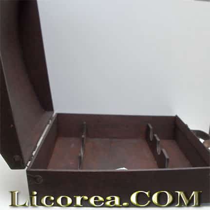 Case with leather straps with capacity for 3 bottles of wine, champagne or liquor.